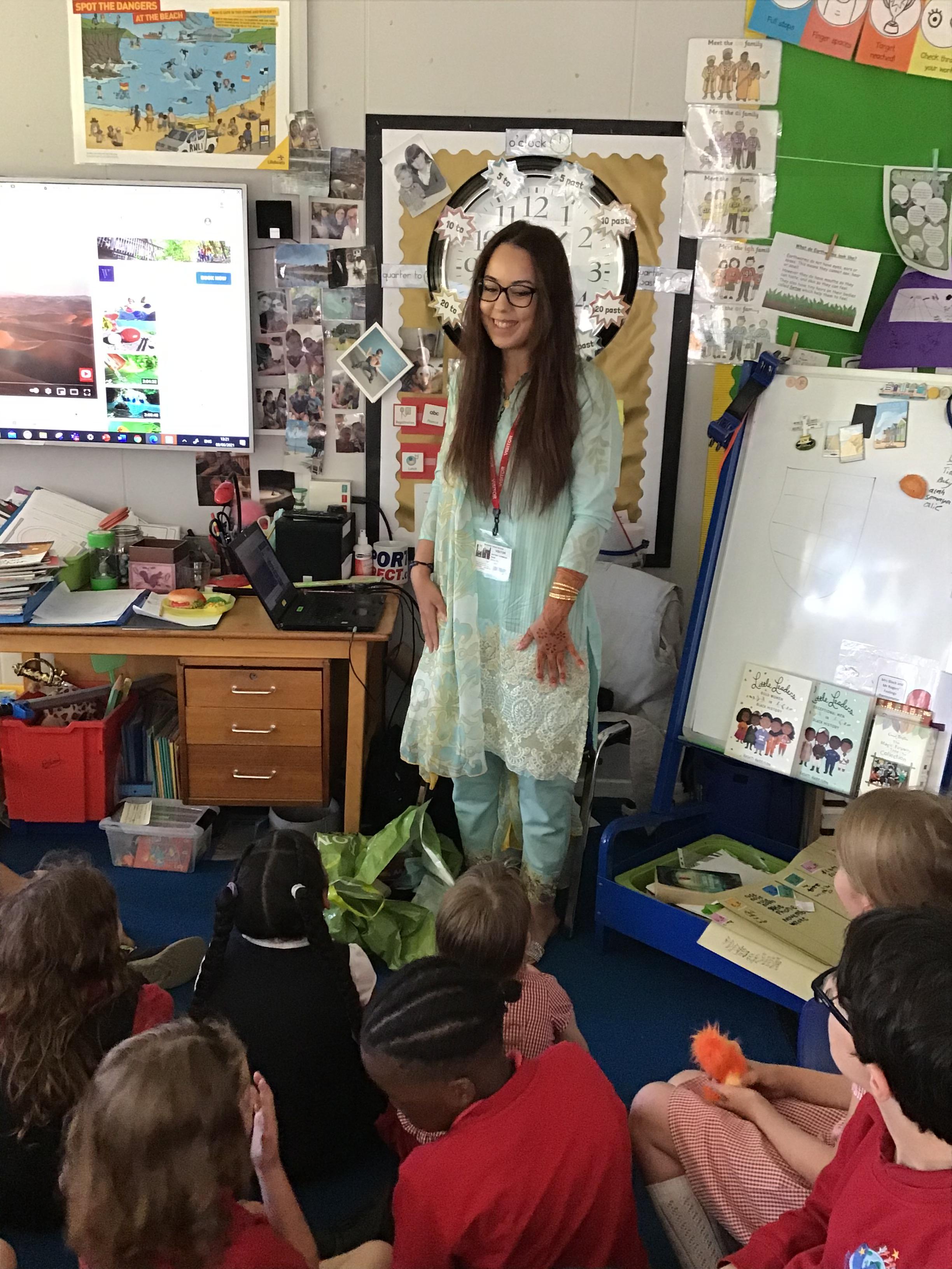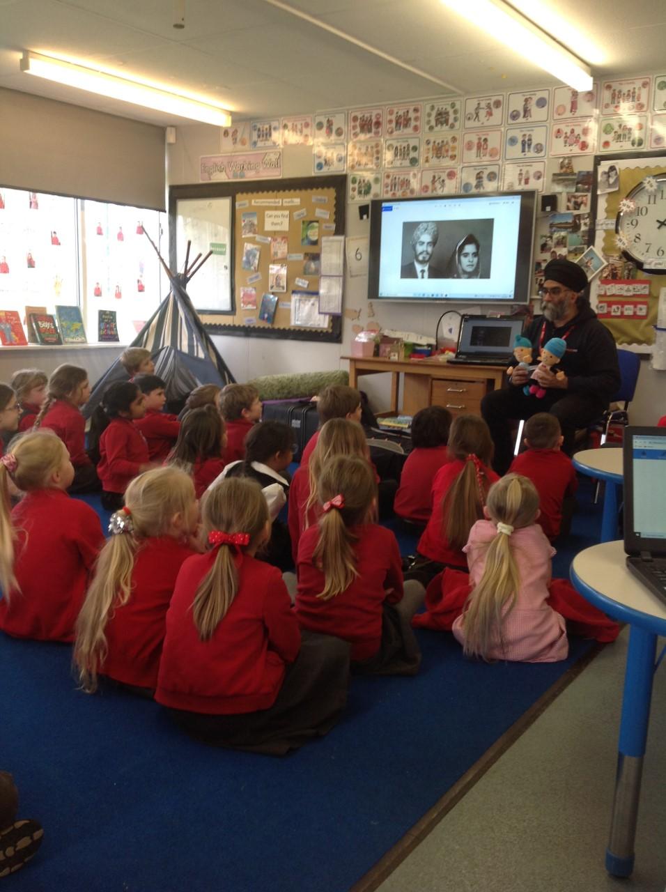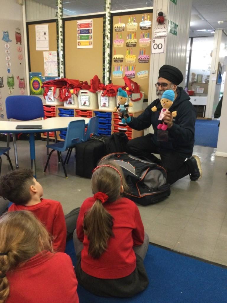 Mr Sigh visits us every year to do workshops about Sikhism. He brings in artefacts, teaches us songs and tells us about his family. He teaches about the Sikh religion and what it means to be Sikh by talking to us about the 5k's and some of the festivals he celebrates. He says 'You are special, I am special, we are all special'.